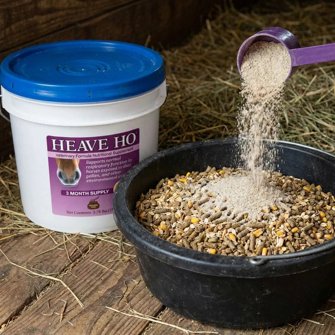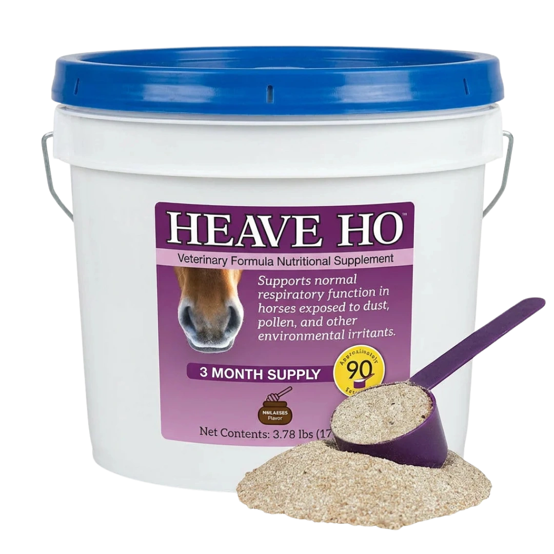 Heave Ho™ is a natural equine respiratory supplement formulated to provide nutritional support for horses experiencing seasonal respiratory stress. Designed to support normal lung function and immune system health, this carefully balanced blend contains herbs, adaptogens, phytonutrients, and botanical ingredients traditionally used to promote respiratory wellness. Heave Ho™ helps maintain healthy mucus levels and supports normal airway function, making it a practical choice during dusty, humid, or high-pollen conditions.