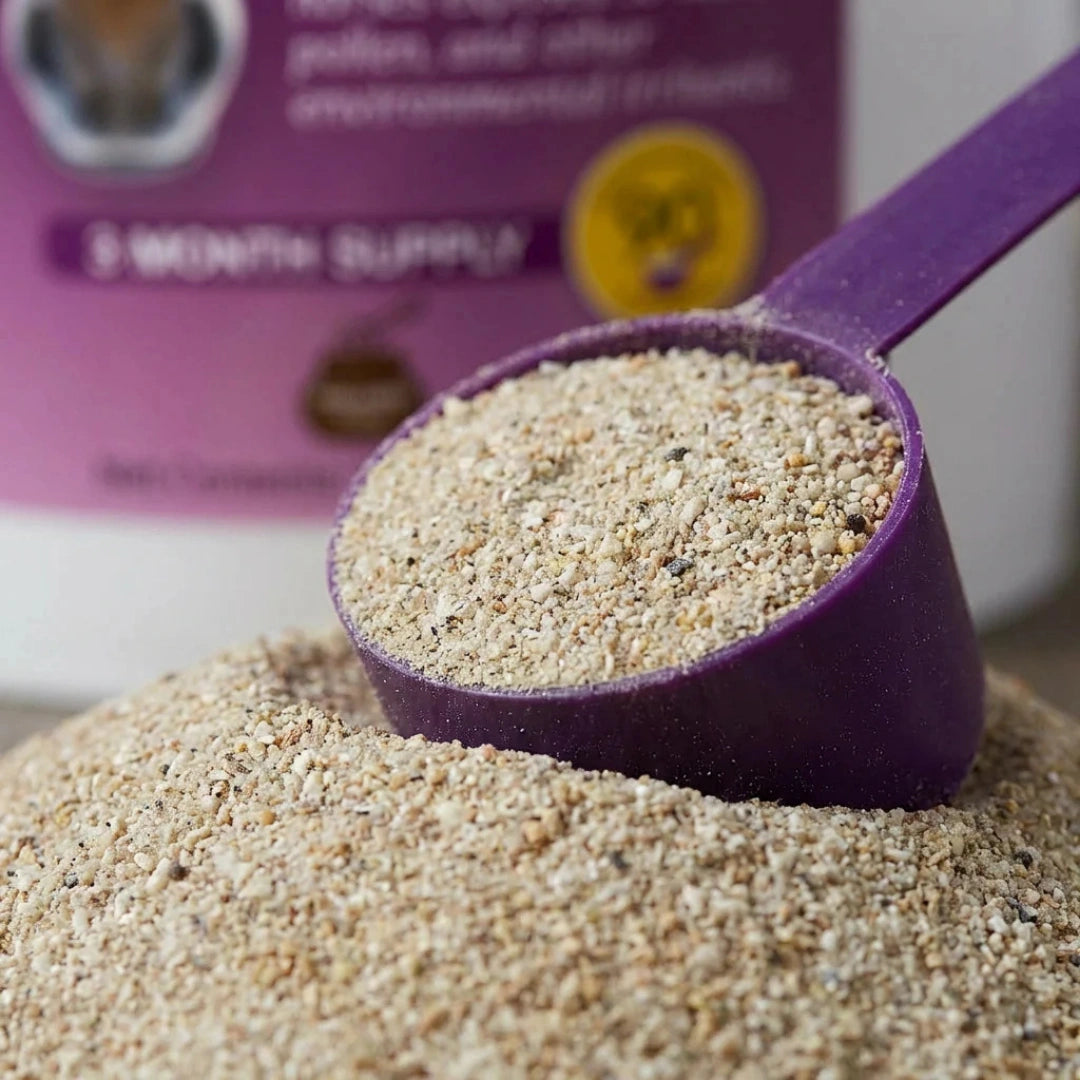 For optimal results, begin with a 7-day loading phase. Mix 1 scoop (2 Tbsp) into the morning feed and 1 scoop (2 Tbsp) into the evening feed daily for 7 consecutive days.