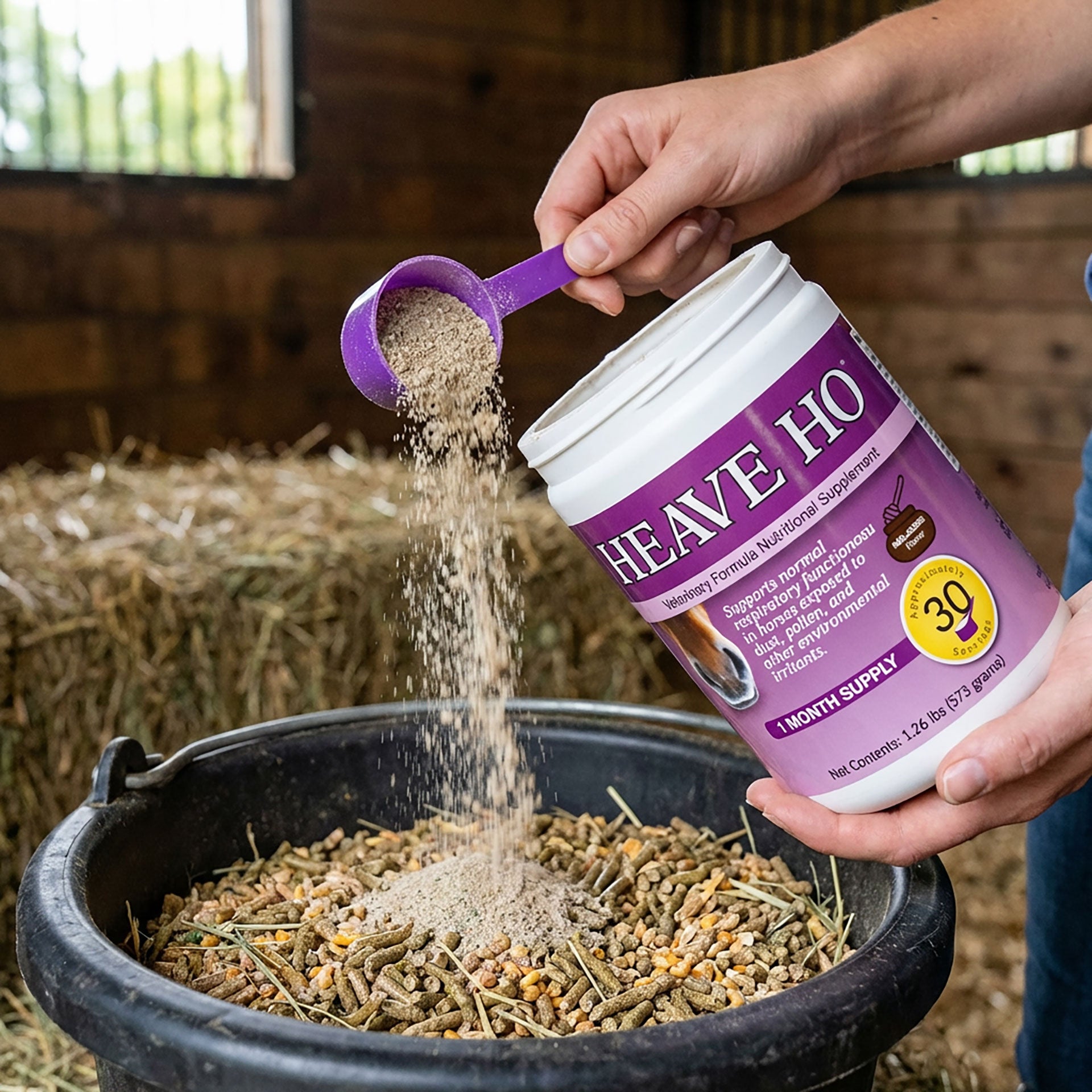 Horses exposed to environmental stressors such as dust, mold, and pollen may benefit from targeted nutritional support to help maintain open airways and overall comfort. Developed by Dr. Frank Reilly, DVM, Heave Ho™ was created with the needs of performance horses and sensitive horses in mind. Many horse owners have reported visible improvements in comfort and demeanor within 14 days of consistent use.* Always consult your veterinarian before adding any new supplement to your horse’s feeding program.