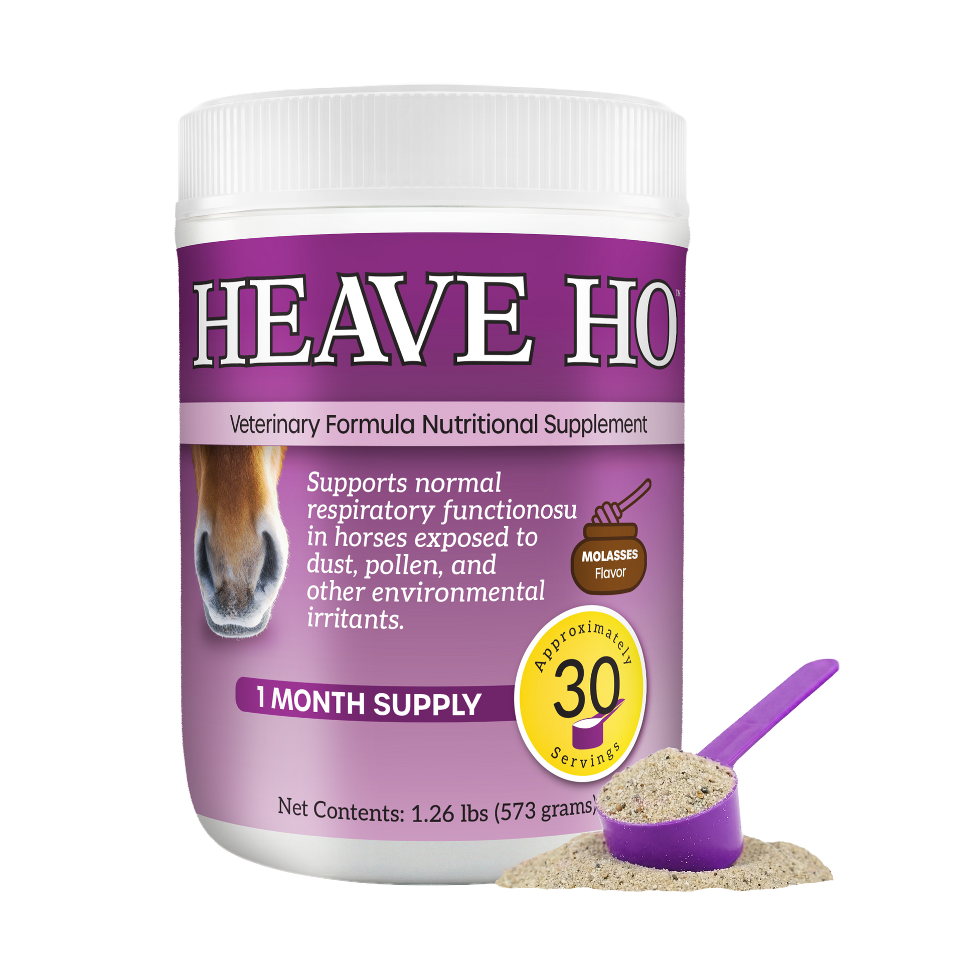 Heave Ho™ is a natural equine respiratory supplement formulated to provide nutritional support for horses experiencing seasonal respiratory stress. Designed to support normal lung function and immune system health, this carefully balanced blend contains herbs, adaptogens, phytonutrients, and botanical ingredients traditionally used to promote respiratory wellness. Heave Ho™ helps maintain healthy mucus levels and supports normal airway function, making it a practical choice during dusty, humid, or high-pollen conditions.