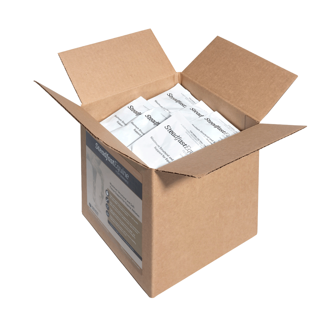 Feed Steadfast Equine Performance® once daily by mixing one pre-measured packet per 1,100 lb of body weight into the horse’s grain or concentrate ration for maximum structural support. For smaller horses or ponies, adjust the amount proportionally (e.g., ½ packet for ponies, ¼ packet for miniatures; see product dosing guidelines for exact weights). Because this performance formulation delivers a “full-strength” dose in every packet, no separate loading phase is necessary. If palatability issues arise, adding a small amount of water, vegetable oil, or molasses can help encourage acceptance. Always consult a veterinarian for tailored recommendations before adding a new supplement to your horse’s daily regimen, especially for horses with underlying health conditions or those in intense training.